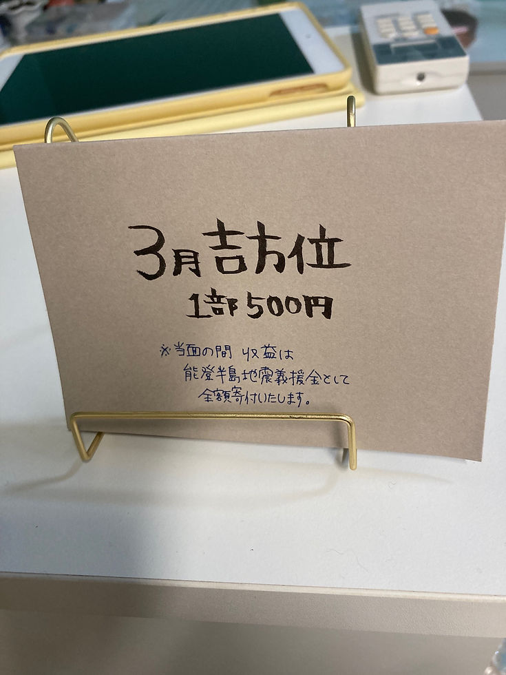 吉方位と道楽でやっているパワーストーン販売の売上とを能登半島地震へ寄付しております。